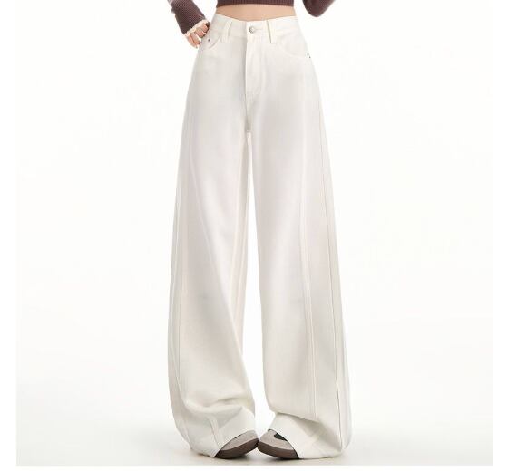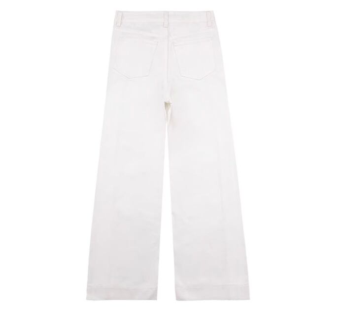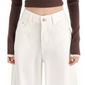 スタイリッシュでトレンドを押さえたバレルレッグ ホワイトジーンズ。