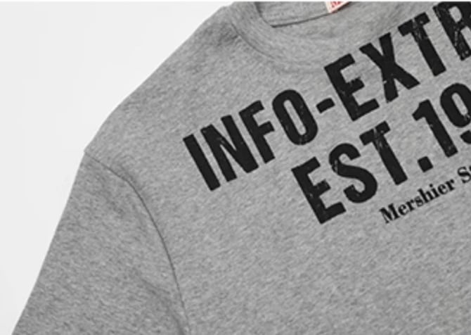 コンパクトめなTシャツに、ネックにかかった文字プリントがインパクト示すデザイン、