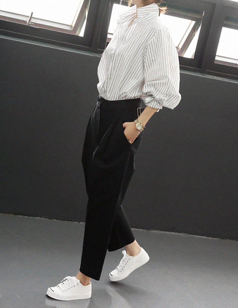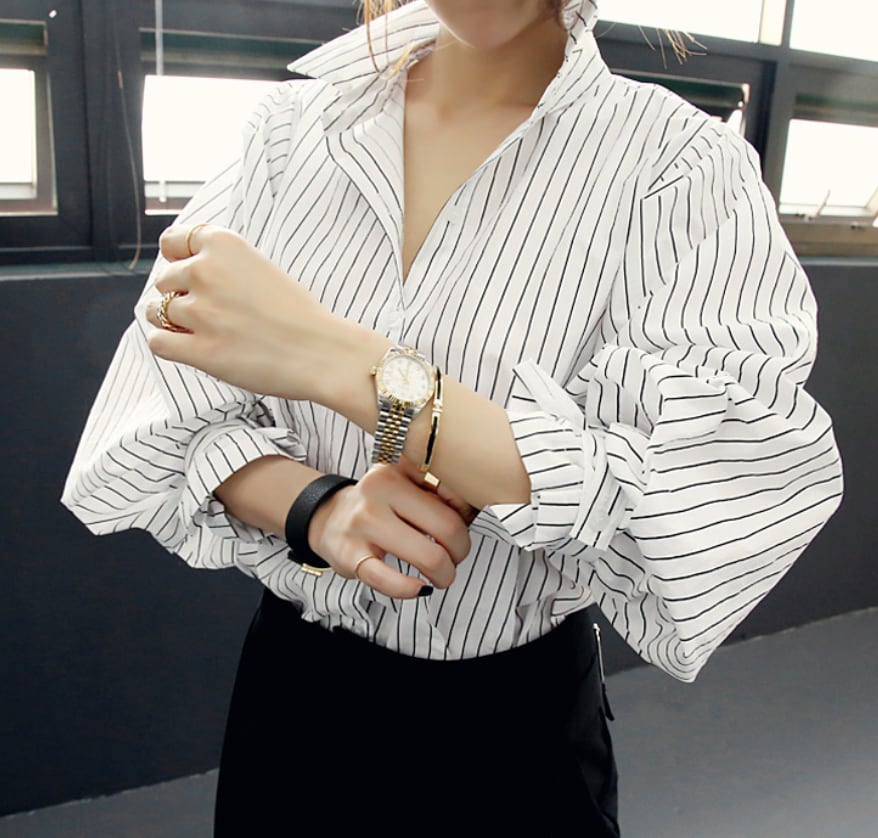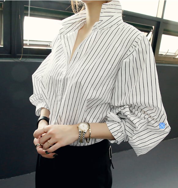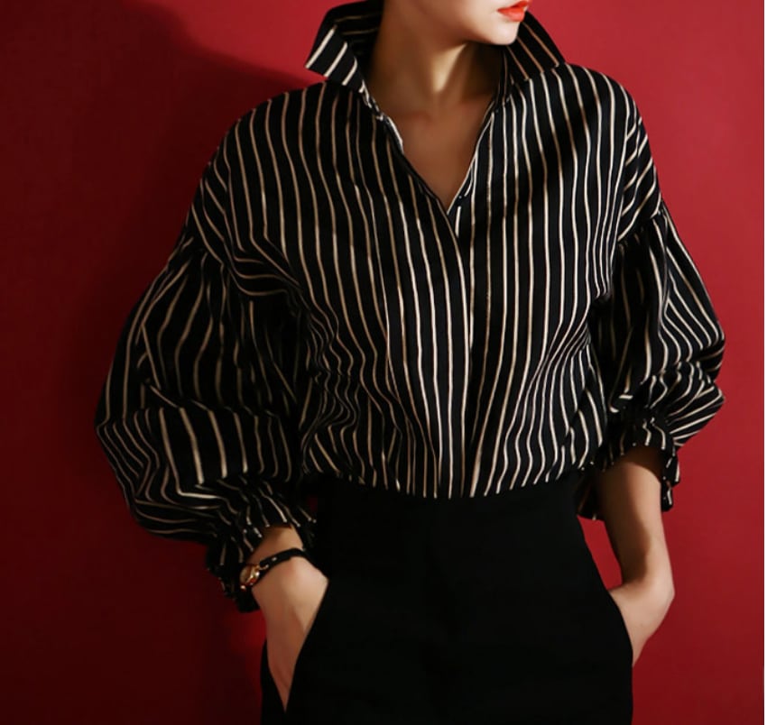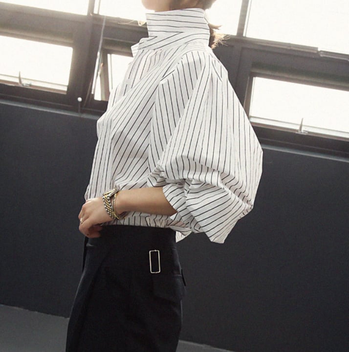 エレガントさを演出しつつ、メンズライクなストライプのハンサムシャツです。