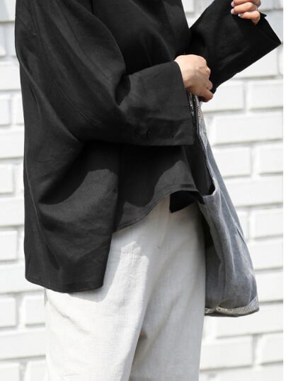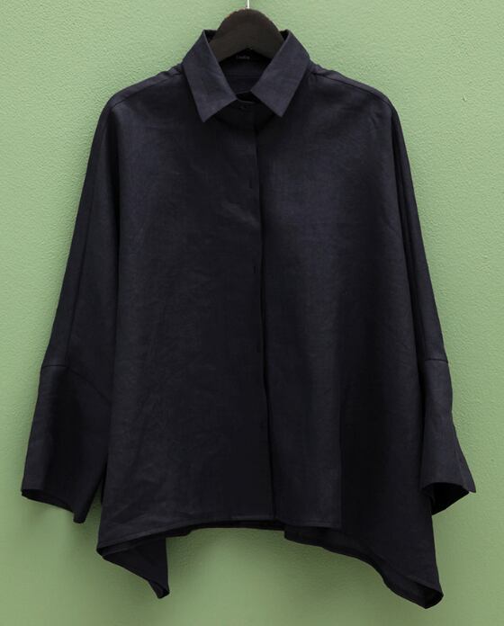 ショート丈で羽織り要素もある、リネン混のオーバーブラウス。