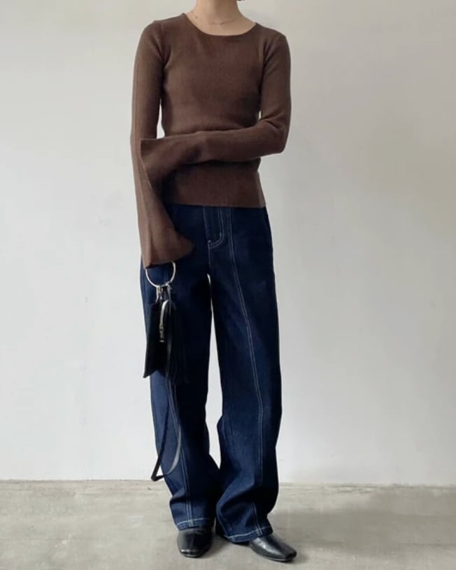 リブ素材の心地よい伸縮性が、インナー使いにマスト、動きやすさを兼ね備えています。
