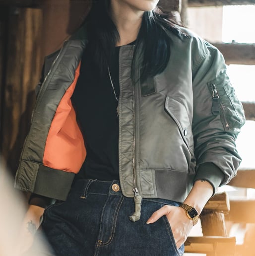 一際目を引く今年らしいショートタイプの MA1ブルゾン。
