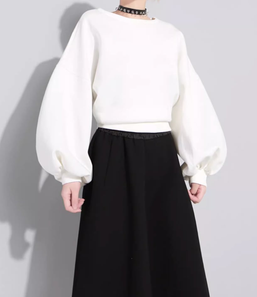 ショート丈と ボリュームある袖口が、カジュアルなフェミニン感を表現。