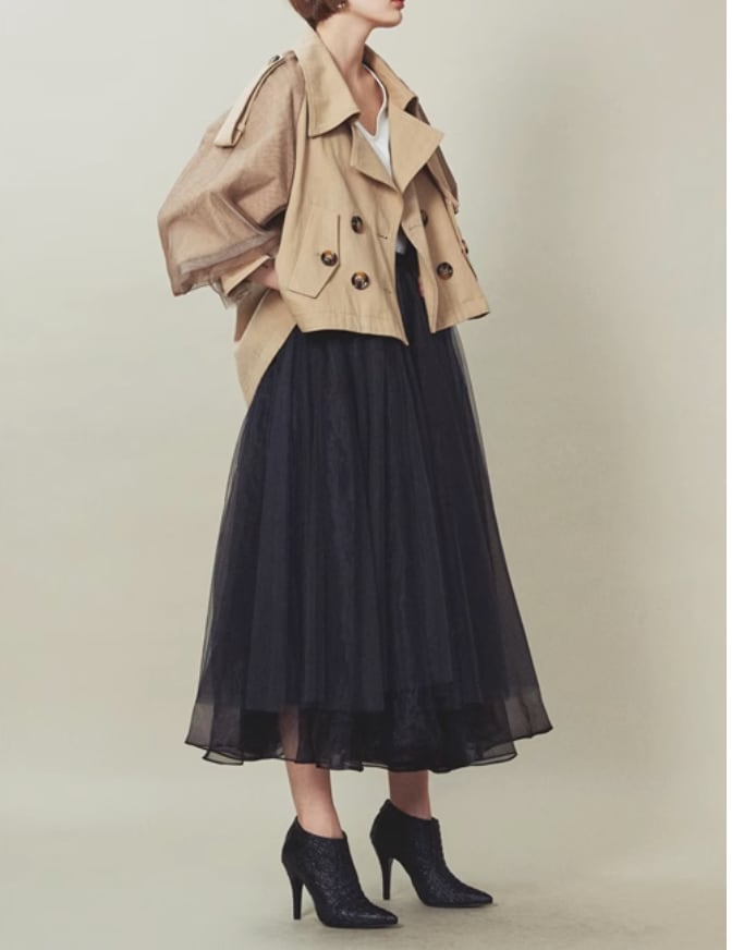 チュールスリーブ ショート丈トレンチ