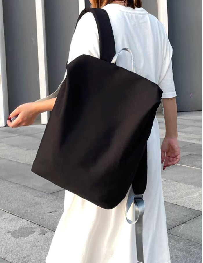 手持ち荷物がある時もカジュアルになりすぎず、クリーンでスタイリッシュな
