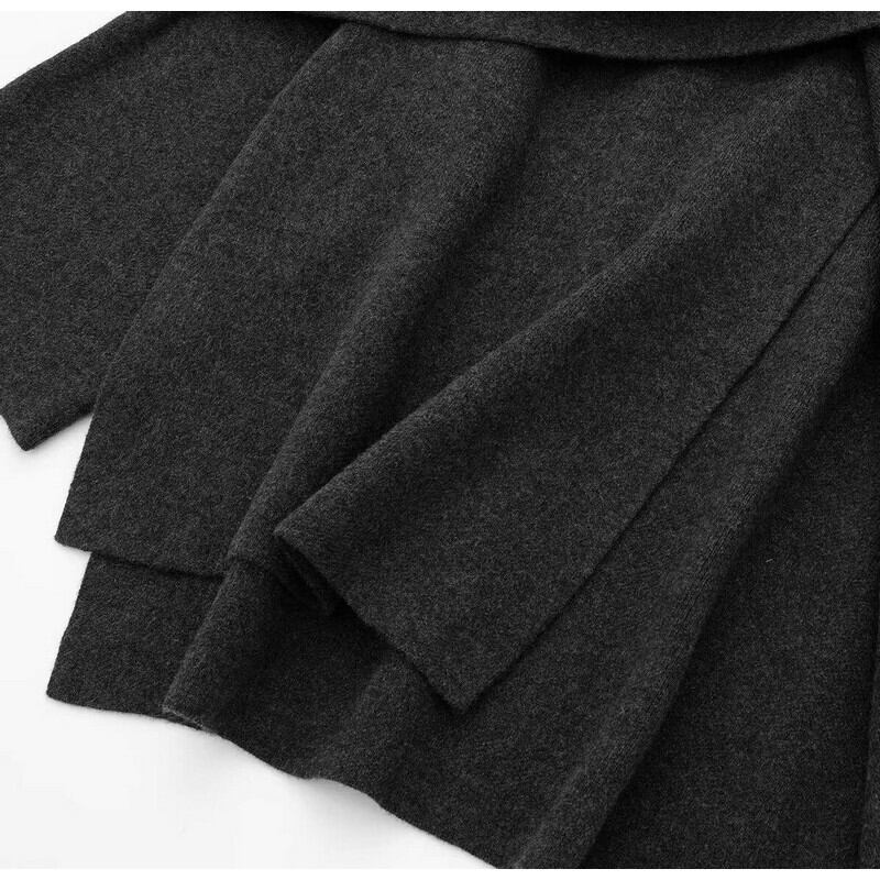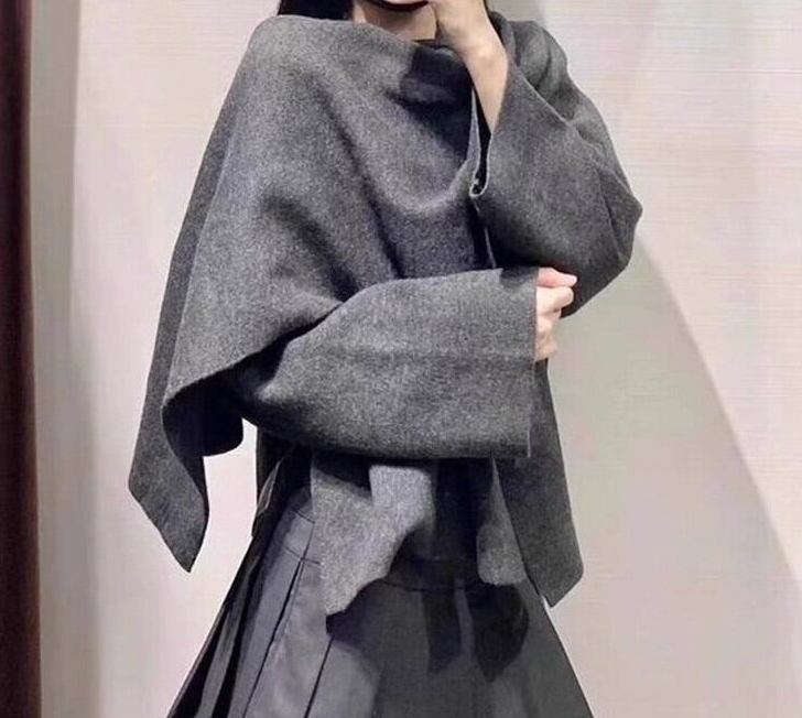 身頃から繋がったショールディティールが 自在に動きを変化させることのできる