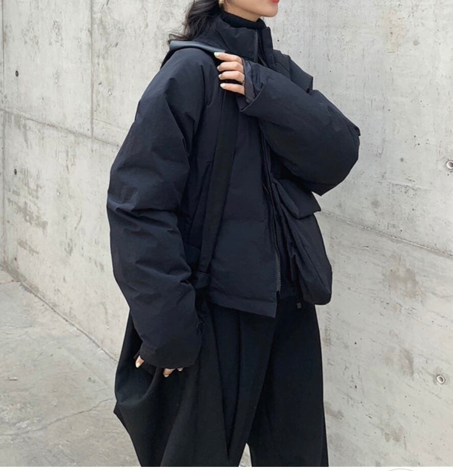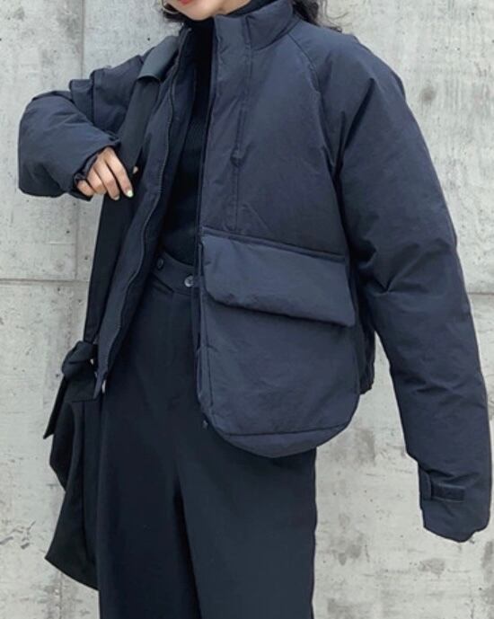 アシメPK付ショート中綿ジャケット