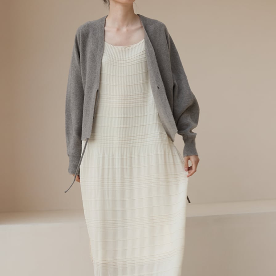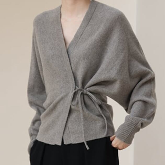 ウールの温かく柔らかな素材感が魅力的な、繊細カシュクールカーディ。