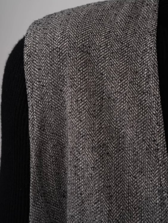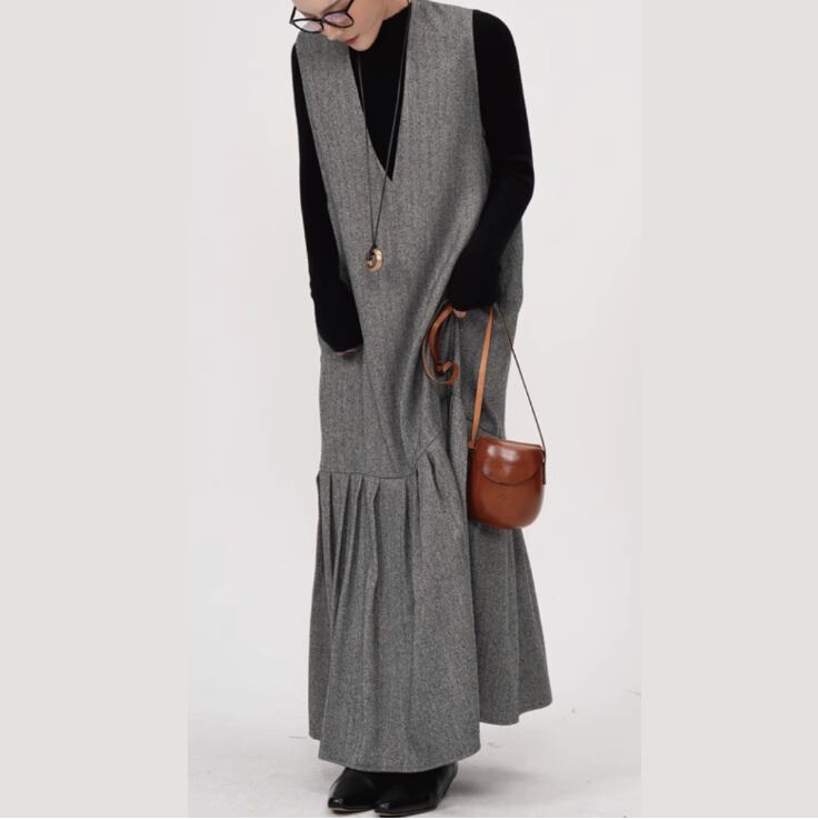細かなツウィード調の Vネックの トラッドなジャンパースカートタイプ。