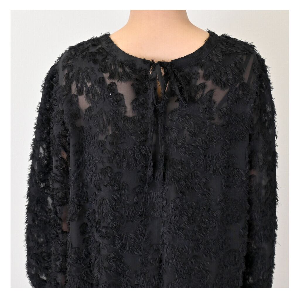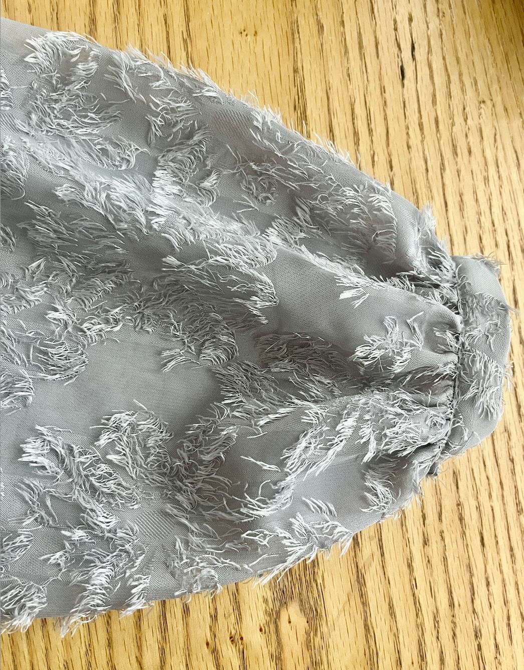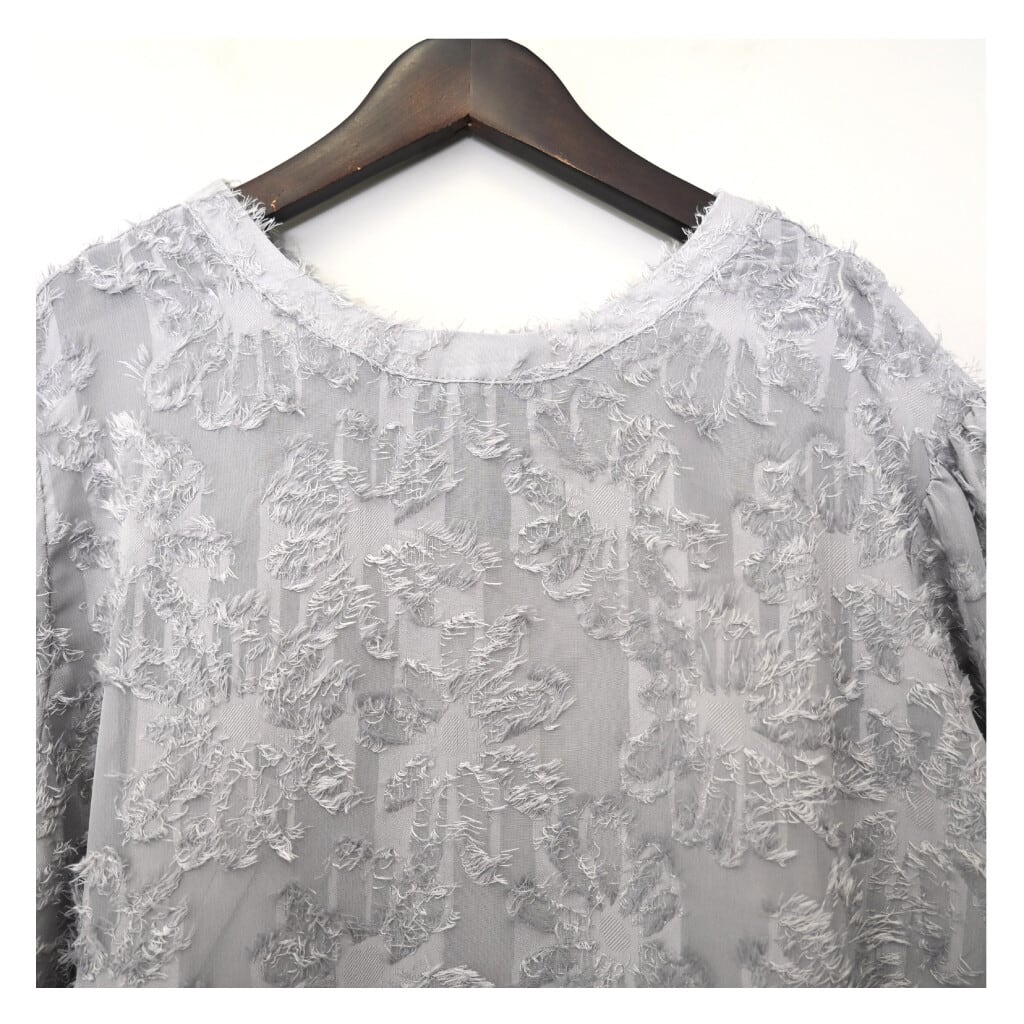 シフォンの滑らかさと凝ったジャガード柄が、フォーマルな雰囲気にも属し、